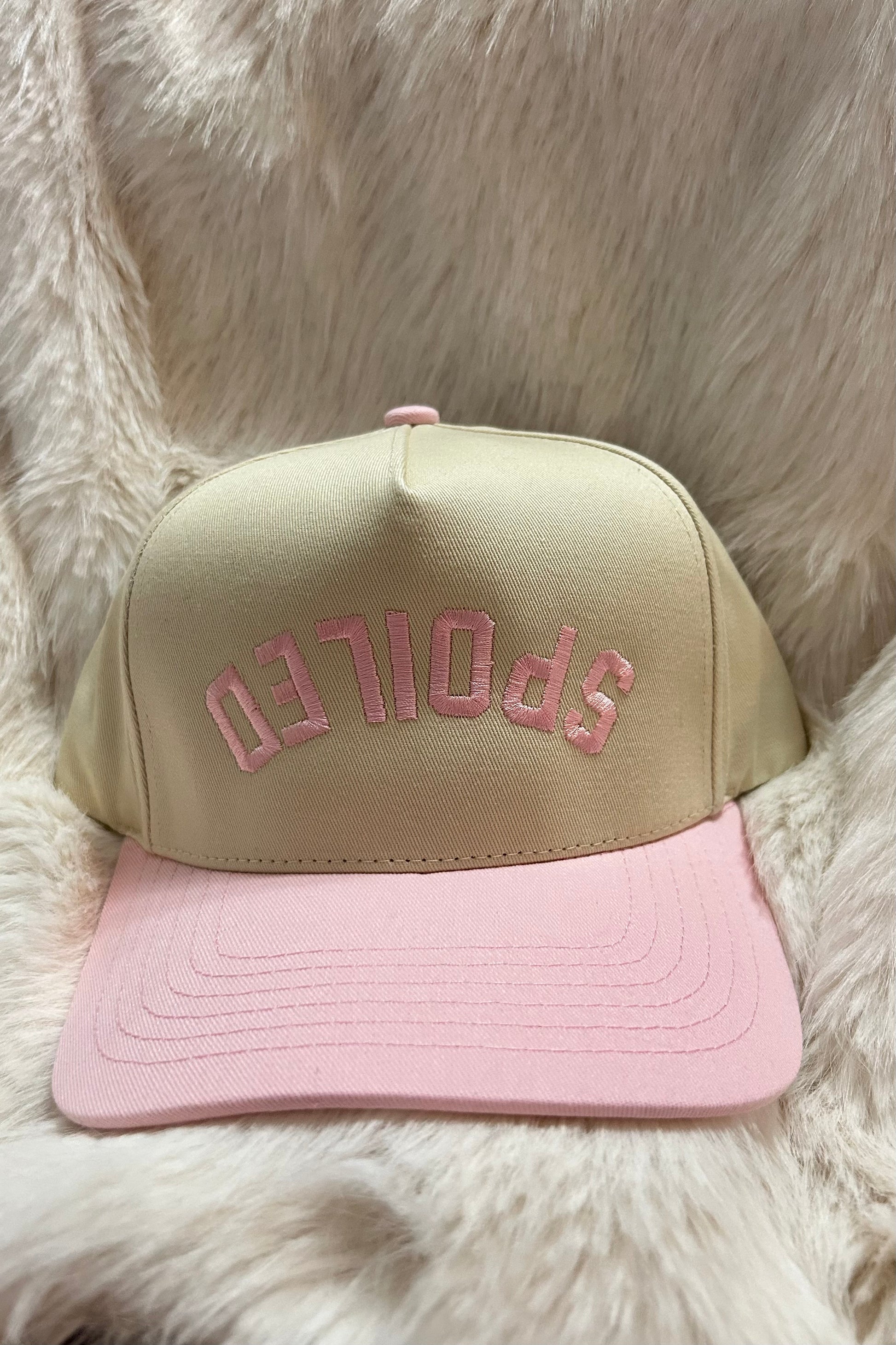 Two-Tone Trucker Embroidered Hat - Light Pink & Cream