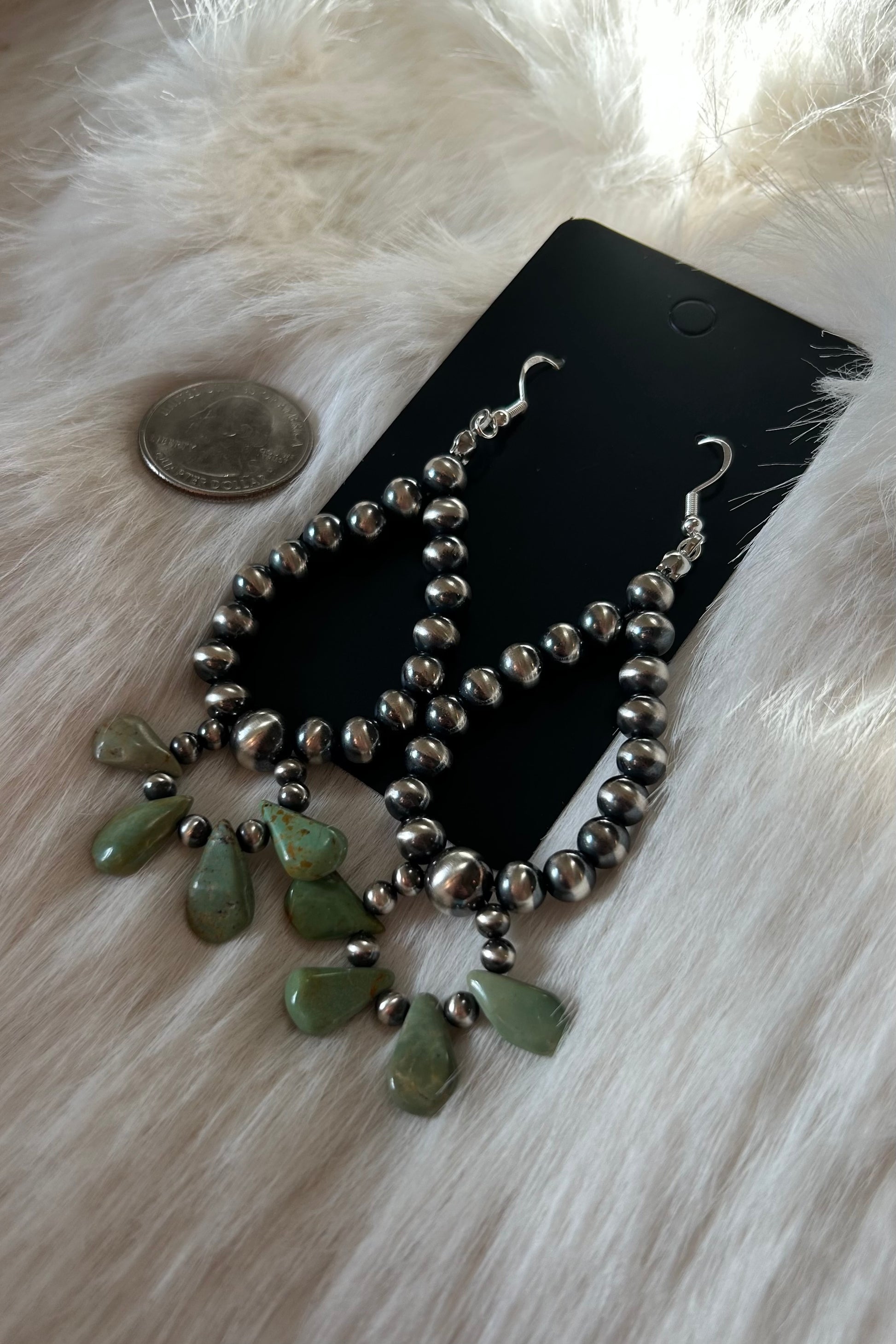 Genuine Sterling Silver Pearls and Genuine Natural American Turquoise Teardrop Pendants