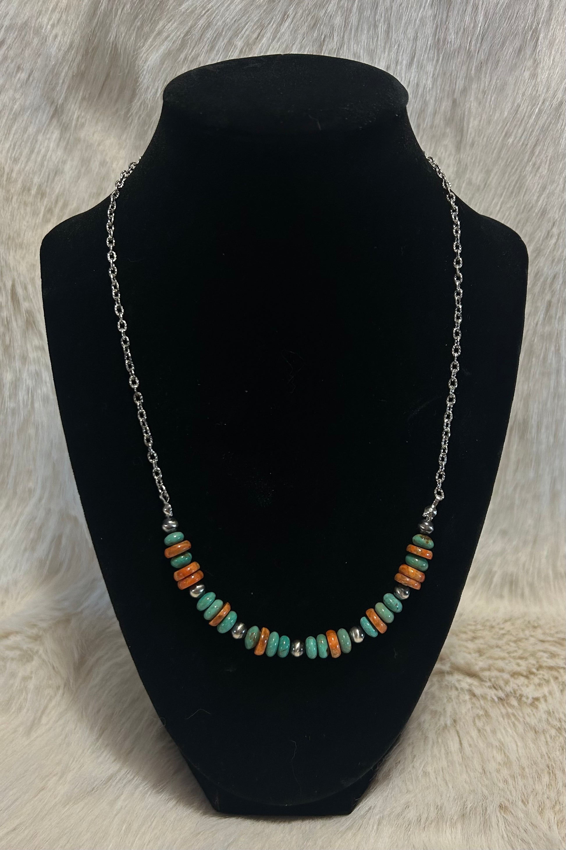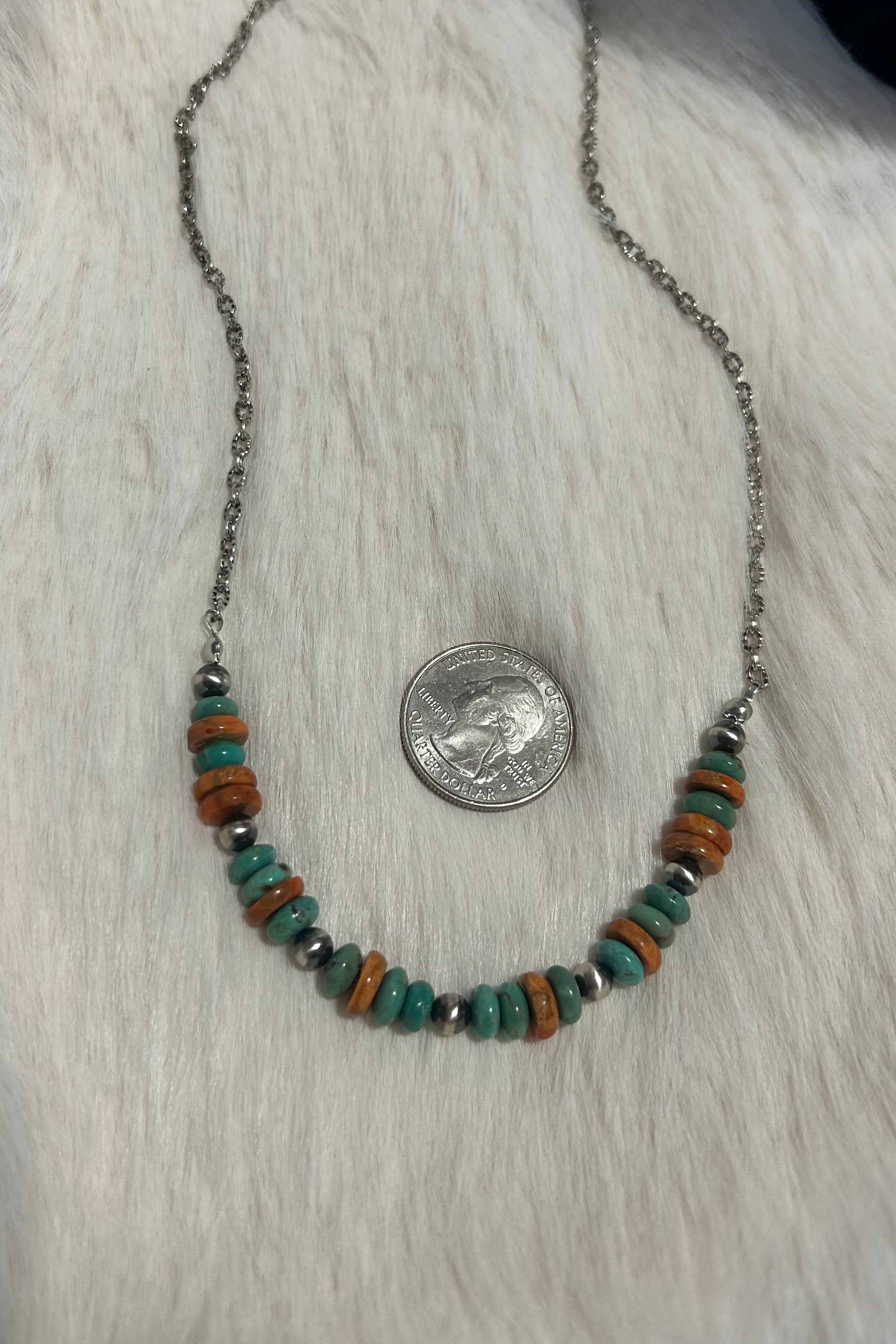 Genuine natural turquoise, genuine spiny oyster & genuine 5mm sterling silver pearls.
