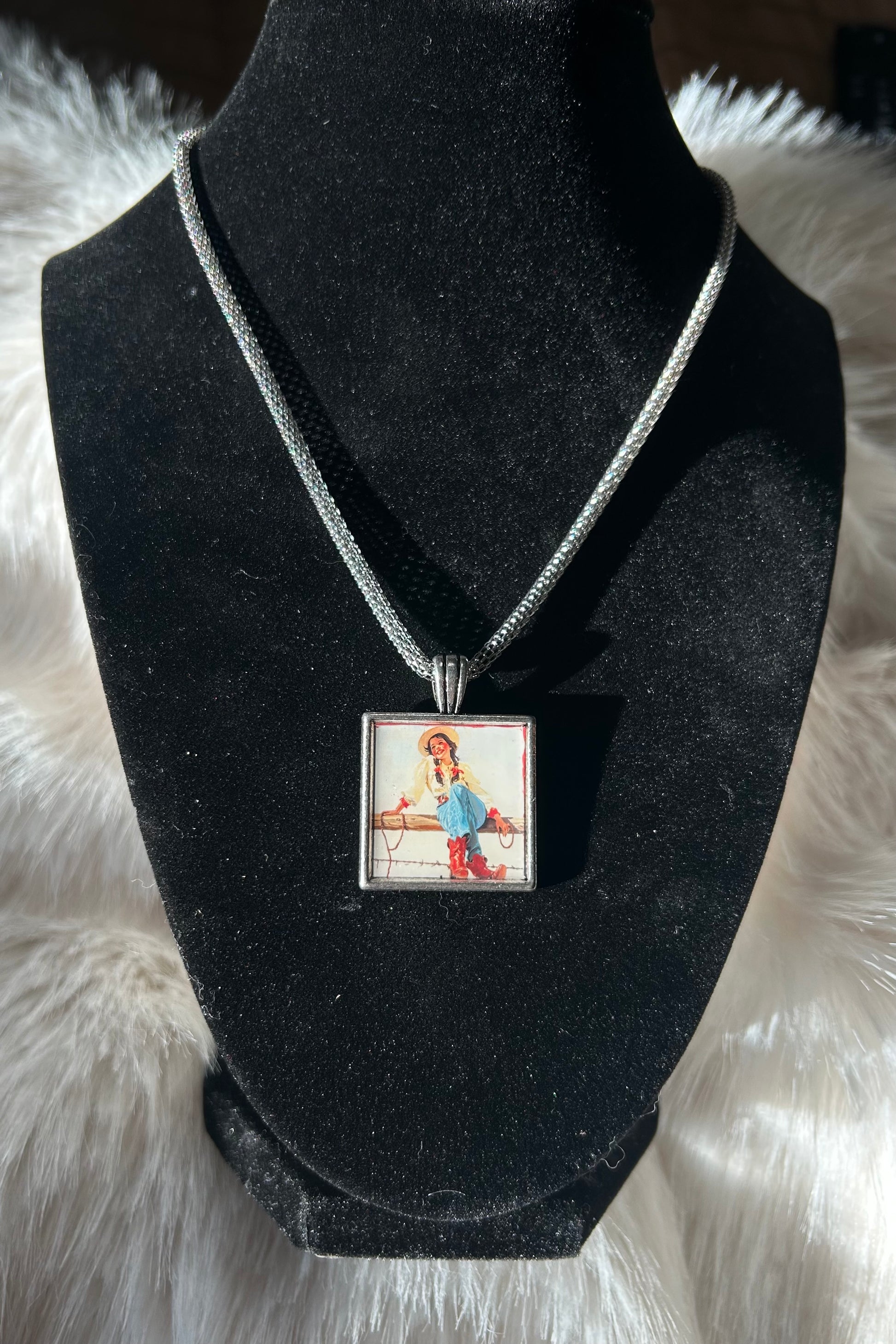 A little different mix up but oh so cute! Vintage style woman pendant on a solid rope chain!