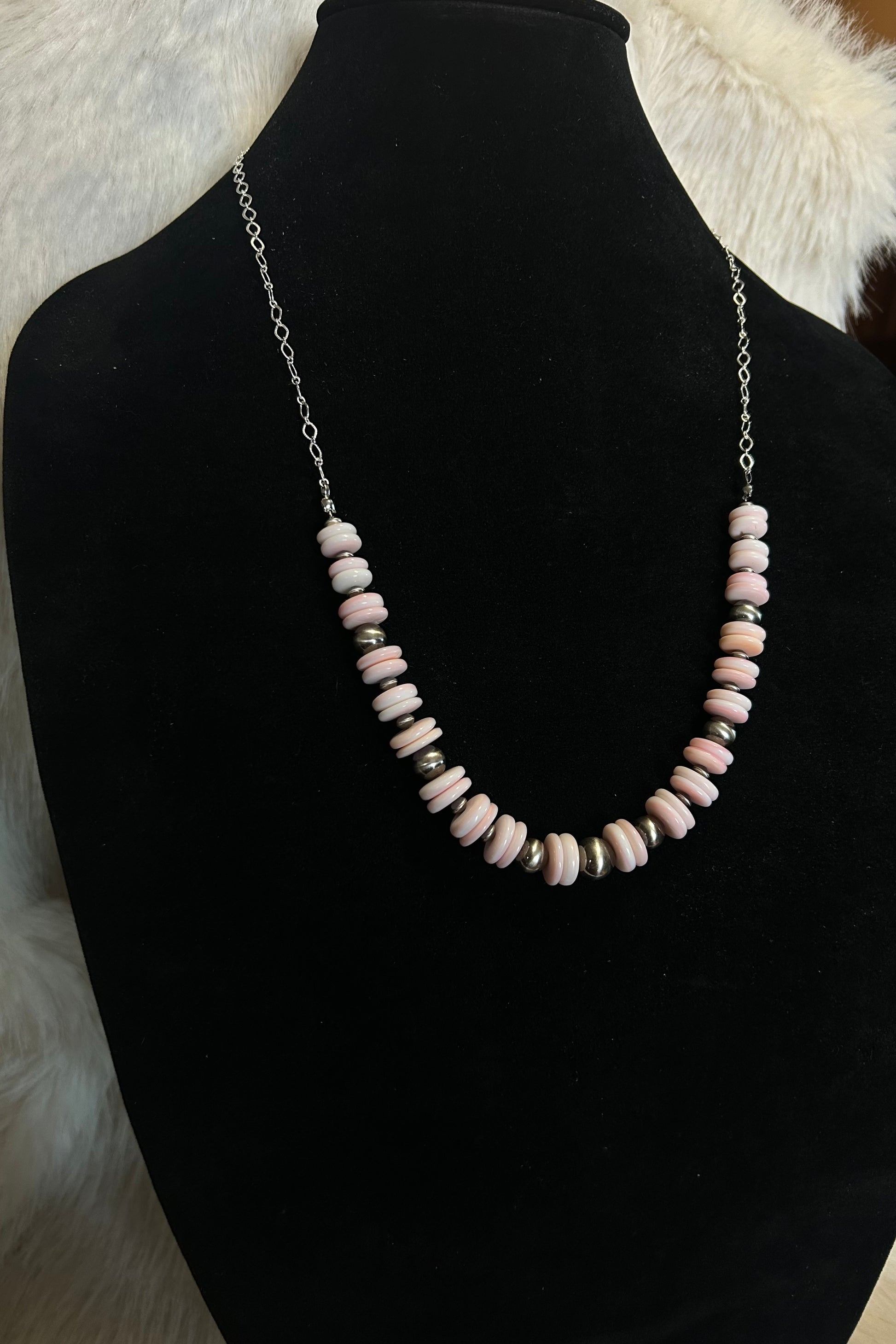 Pink Conch Disc Beads and Genuine Sterling Silver 8mm, 10mm & saucer Beads.