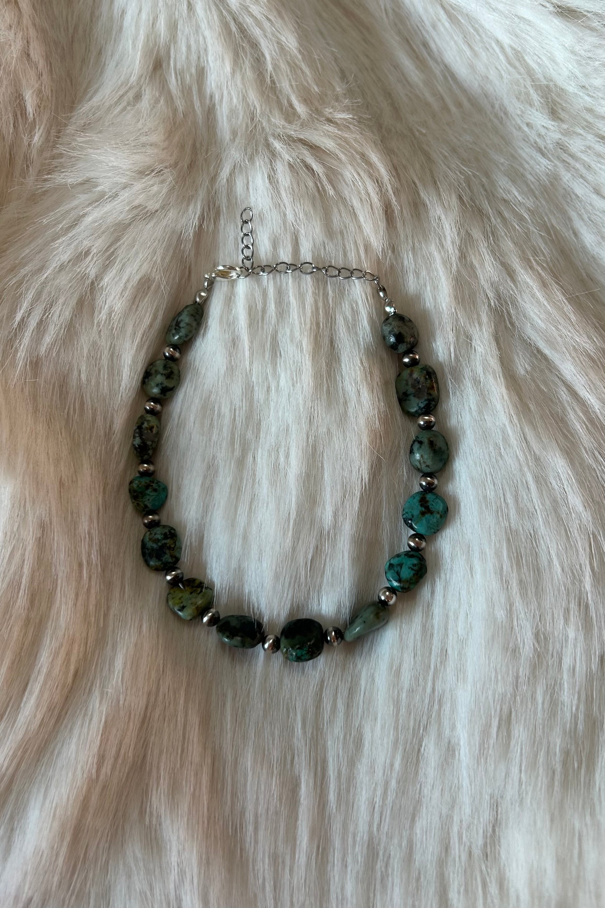 8mm-10mm Natural Green African Turquoise Pebble/Nugget Beads with Genuine Sterling Silver 4mm Peals